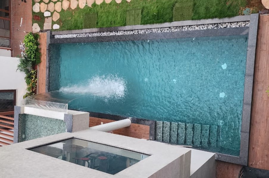 Aquaaworld Greentech Pvt Ltd was commissioned by Mr. Venkatesh and Mr. Prashanth to design and execute a modern swimming pool system with Bluematic smart automation for their premium residence in Chennai. The vision was to create a pool that would not only stand out aesthetically but also deliver ease of operation, safety, and long-term efficiency.